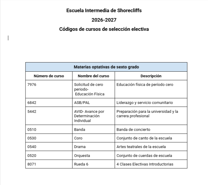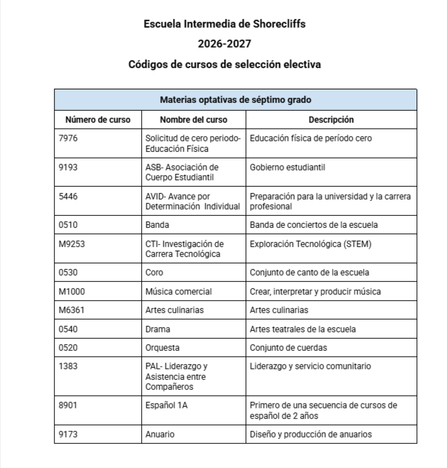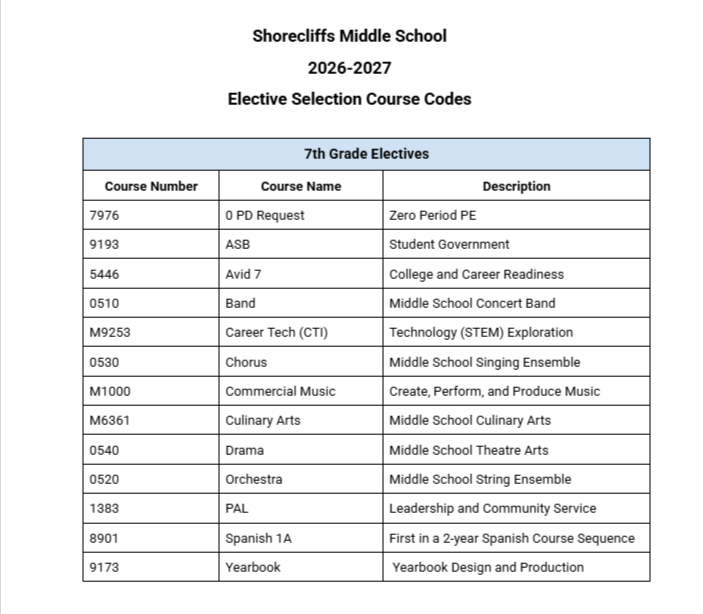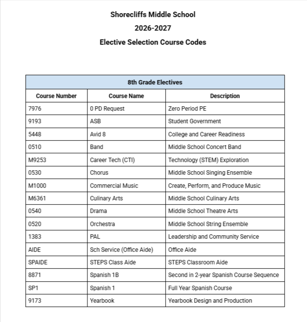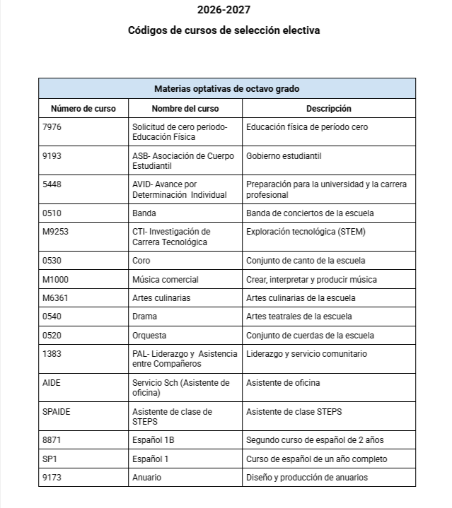 Please note that all electives are subject to staffing availability and are not guaranteed. Student attendance, work habits, citizenship, and discipline may be reviewed before placement in impacted electives.
